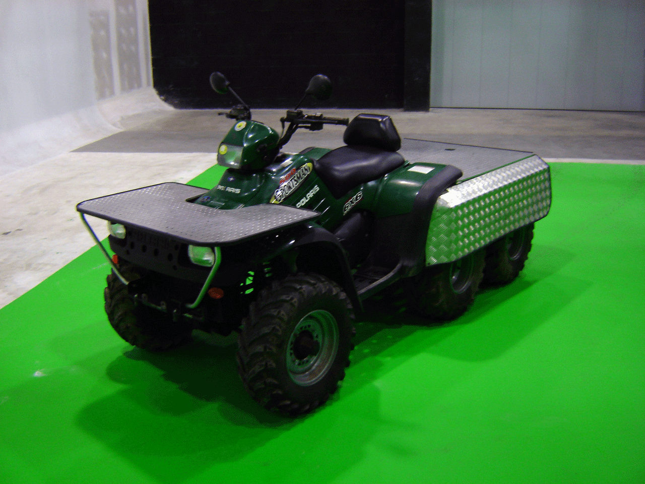 Brand: POLARIS, Model: PT6250, Drive: SPORTSMAN 6×6, Maximum Height 1161 mm/3′.9″, Maximum Width 1116 mm/3′.8″, Rear Platform 105 cm x 105 cm/3′.53″ x 3′.53″, Front Platform 60 cm x 105 cm/2’x 3′.53″.