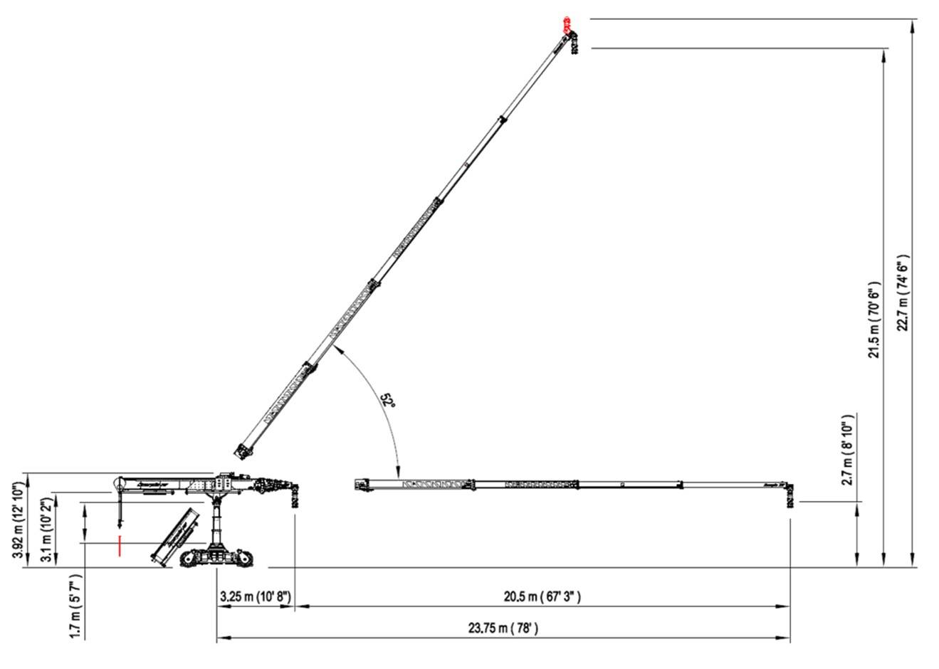 La grúa Scorpio 78´ es la grúa telescópica más larga con capacidad de control humano.