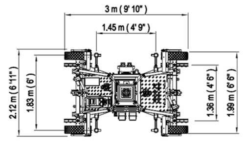 • Selectable width of the articulated legs with lockable position